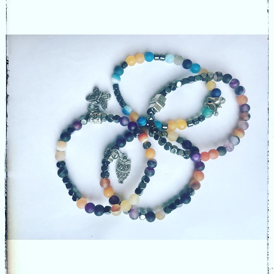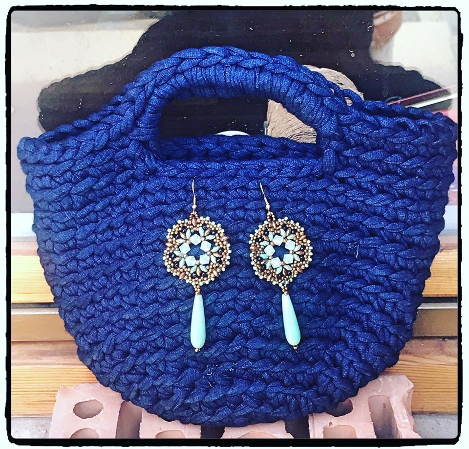 Una volta scrivevo racconti, ora faccio orecchini, anelli, collane, borse e segnalibri. Uso pietre dure, swarovski, vetro pressato e perline della repubblica ceca. Il cordoncino con cui faccio le borse è cotone al 100%. I segnalibri e gli orecchini di carta sono fatti con carta giapponese e nepalese dipinta a mano.
